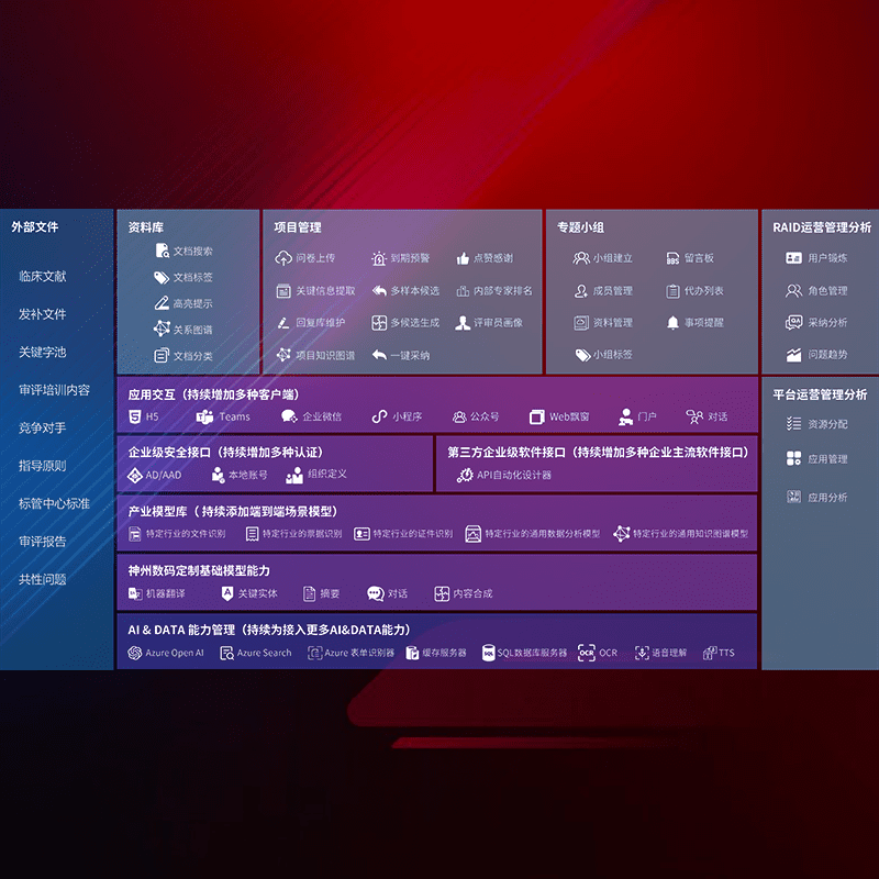 医疗器械产品上市前,,,,要熟悉严格与繁复评审标准,,,整理分析监管机构指导文件中的海量信息。。。企业急需一个智能化解决方案,,,提升知识管理效率,,,提高评审通过率,,,,以提升其市场竞争力。。。